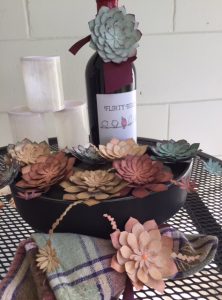 With such a large group of 13, we decided to do all of the die-cutting ahead of time and assemble the pieces into individual bags. We utilized the Succulent project kit from Stampin’Up! and cut another dozen sets from the dies. Then all they had to do was the little bit of stamping or sponging they wanted before assembling. The ladies all loved the project and had a blast! Of course, I’m sure the wine helped.